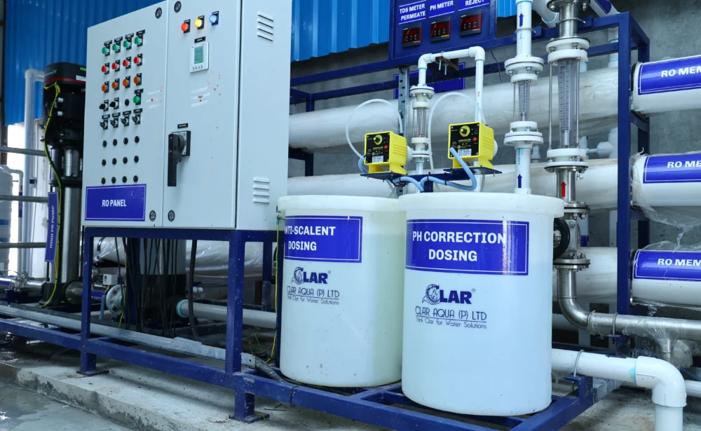 Clari Aqua’s RO plants remove dissolved salts and impurities from water using semi-permeable membranes.